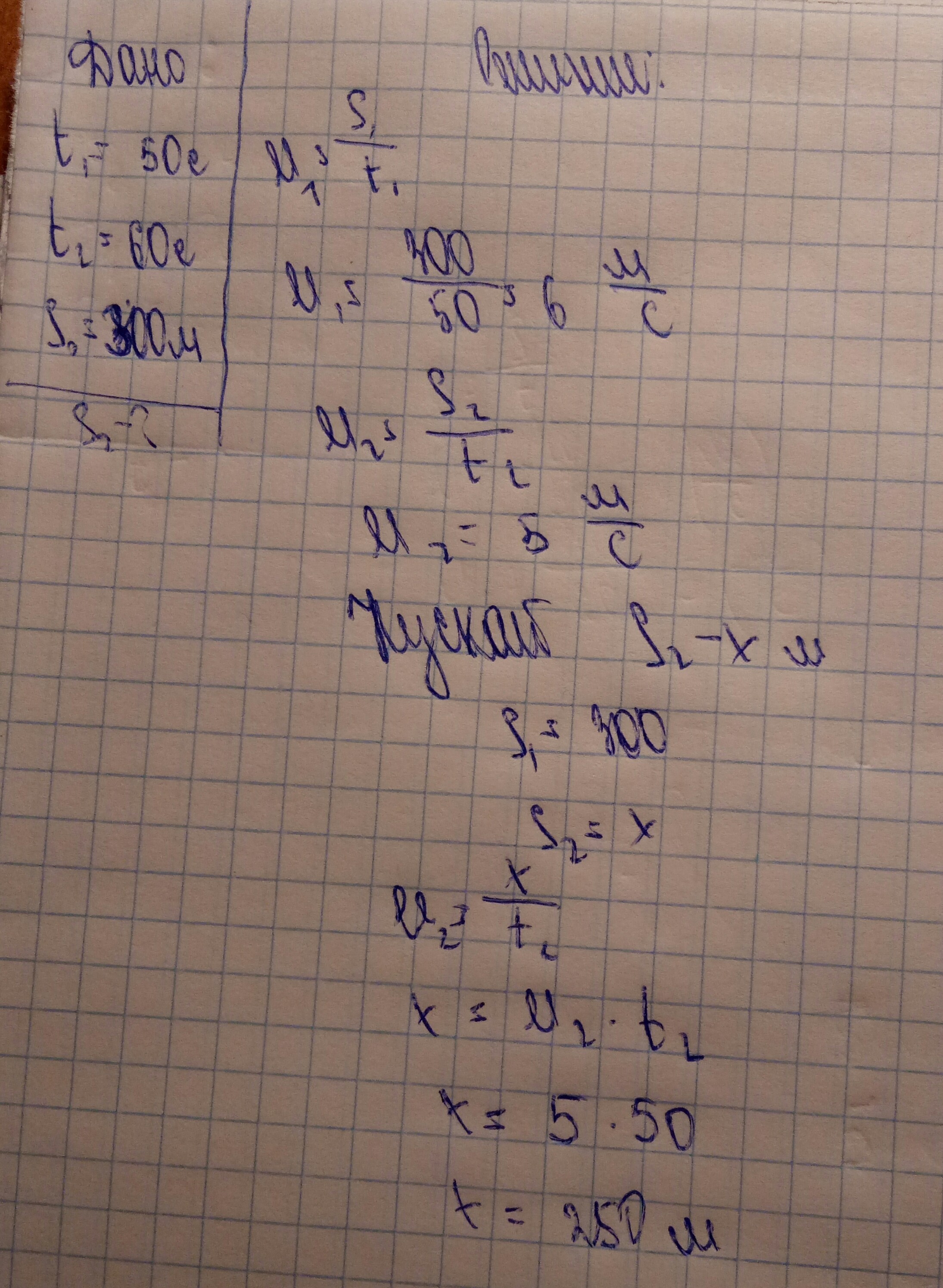 Два бегуна соревнуются в беге. Длина круговой дорожки равна 300 м. Первый бегун пробегает дистанцию за 50 с, а второй за 60 с. На сколько отстанет второй бегун к тому времени, когда первый будет заканчивать первый круг?