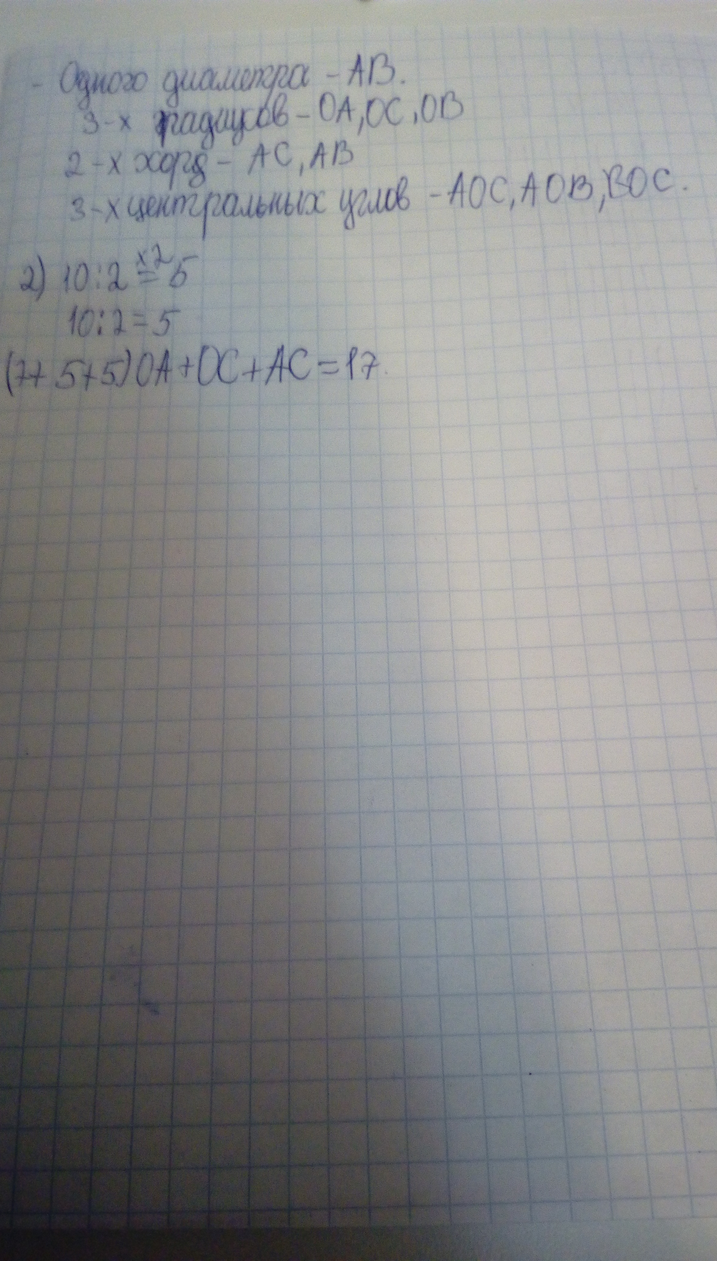 2)диаметр окружности 10 см длина хорды АС 7 см.