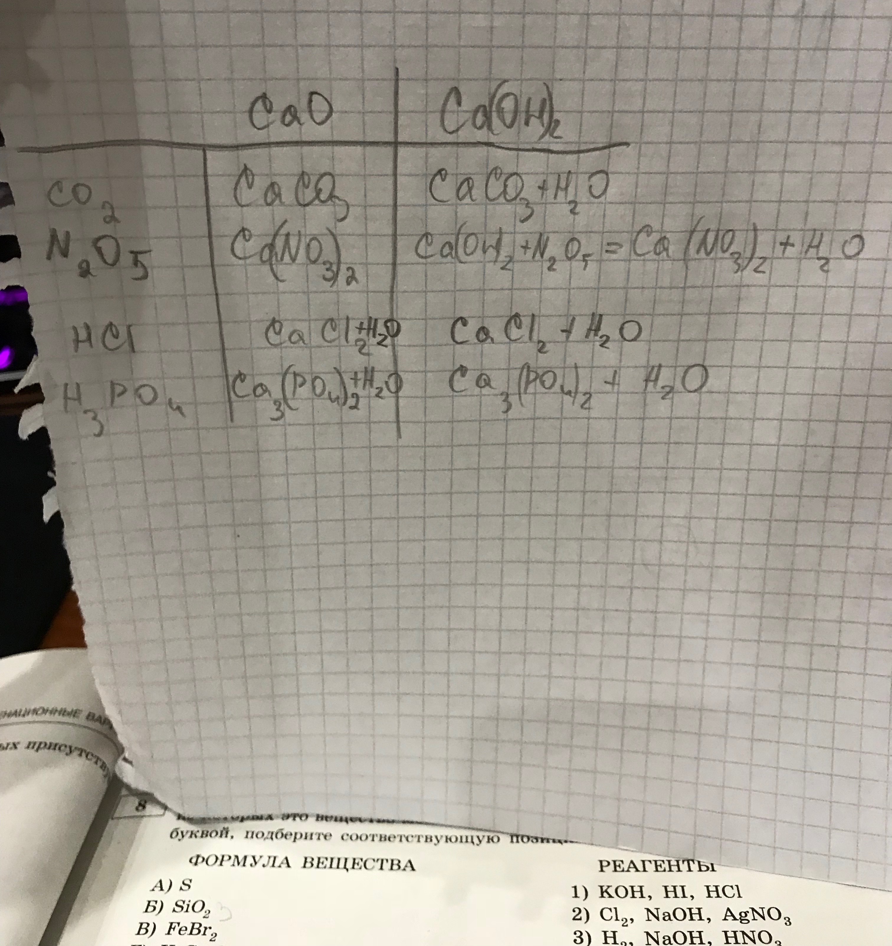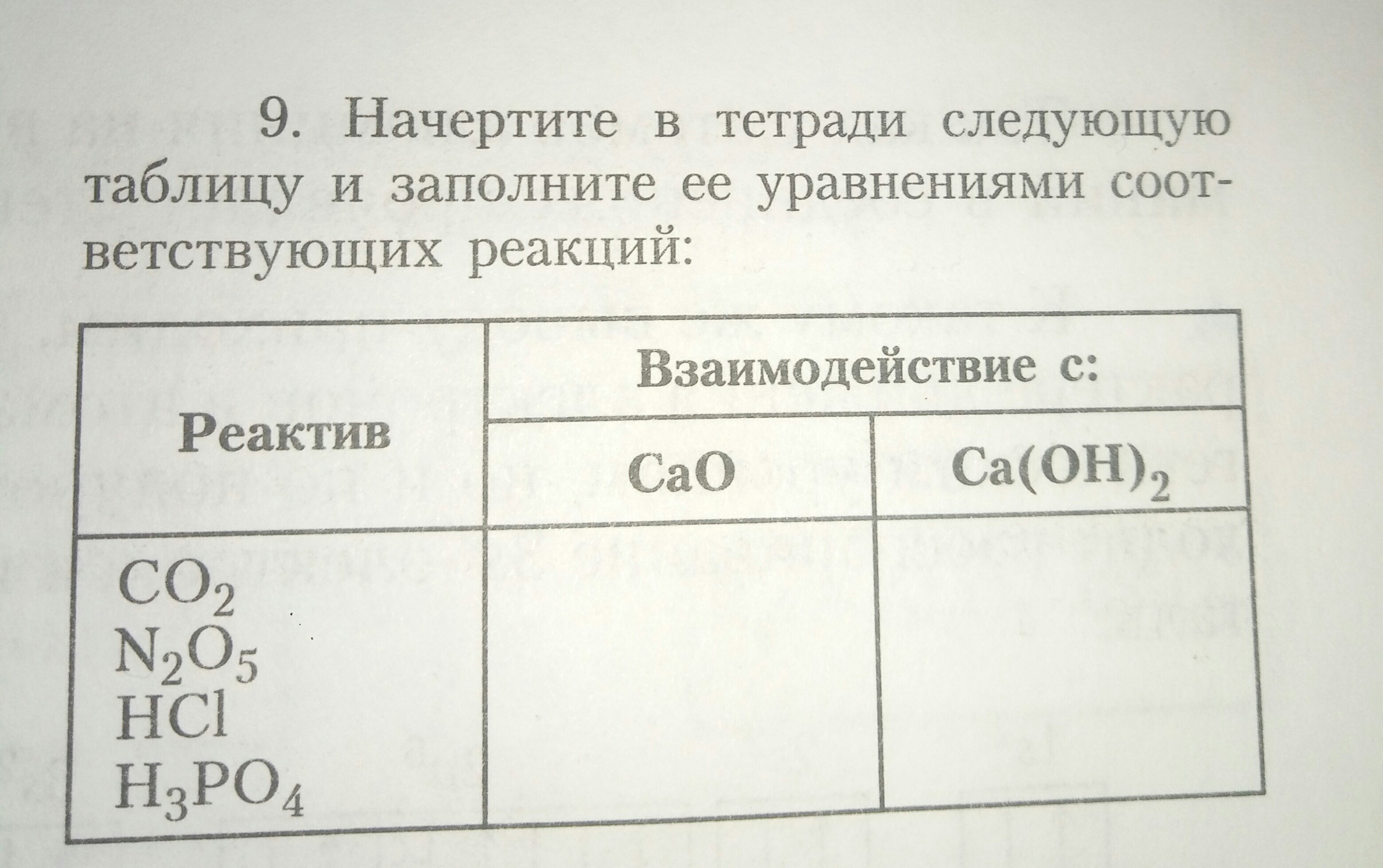 Начертите в тетради следующую таблицу и заполните ее уравнениями соответствующих реакций: