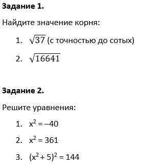 1. Нет корней, так как число в квадрате не может быть отрицательным