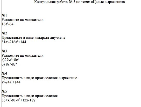16а-64+8=-40 (2) 81а-216а+144-4+2=7 (3) 27м+8к+3+6=44-8в-8с+3-9=40 (4) а-24а+144+2-4=166 (5) 36+х-2-81-у+2+12х-18у=-51