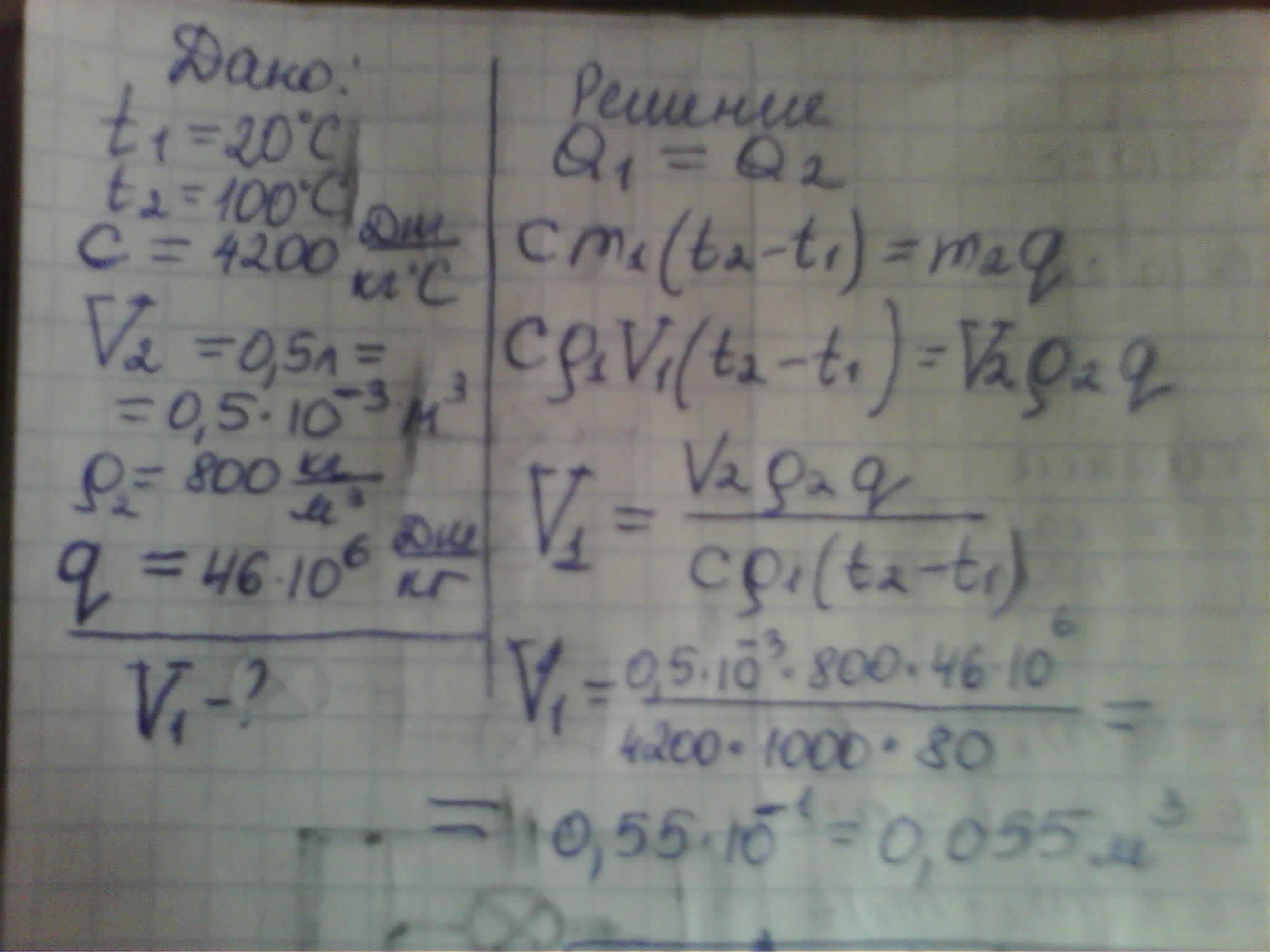 Какой объём воды можно нагреть от 20 градусов до температуры кипения за счёт тепла,полученного при сжигании 0,5 л керосина?