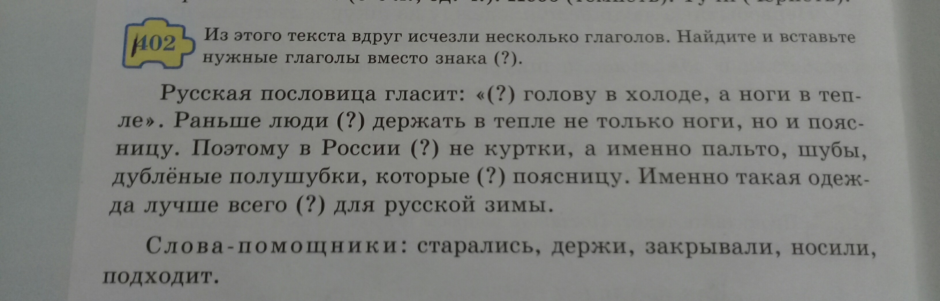 Русская пословица гласит : "Держи голову в холоде,а ноги в тепле".Раньше люди старались держать в тепле не только ноги,но и поясницу.Поэтому в России носили не куртки,а именно пальто,шубы,дубленые полушубки,которые закрывают поясницу.Именно такая одежда лучше всего подходит для русской зимы.
