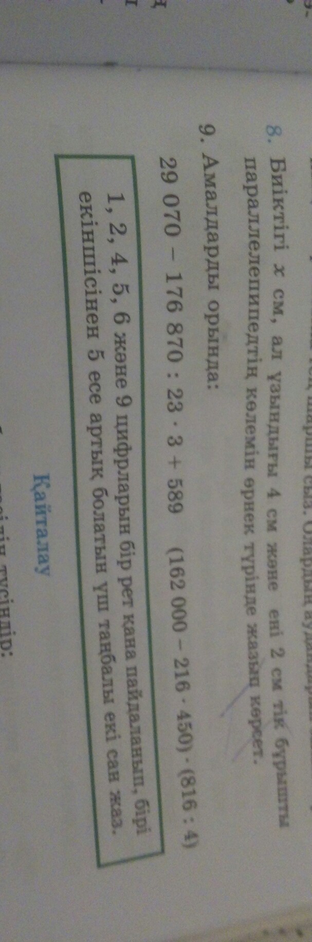 4 сынып математика 9 есеп 45 бет