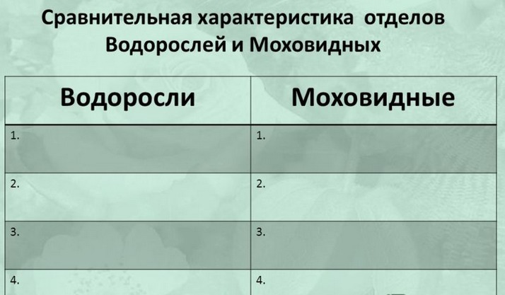 Мхи более организованные растения. У них есть ткани, есть органы: стебель, листья. У них есть гаметофит, собственно растение и спорофит, развивающийся на гаметофите и образующий споры. Споры позволяют мхам расселятся не только водным путём. Мхи обитают на поверхности почвы. камней, растениях