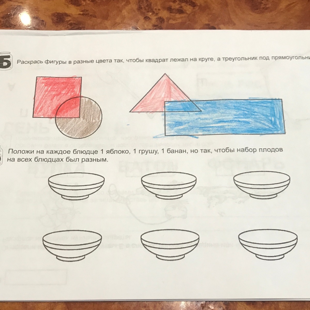 Положи на каждое блюдце 1 яблоко,1 грушу,1 банан,но так,чтобы набор плодов на всех блюдцах был разным