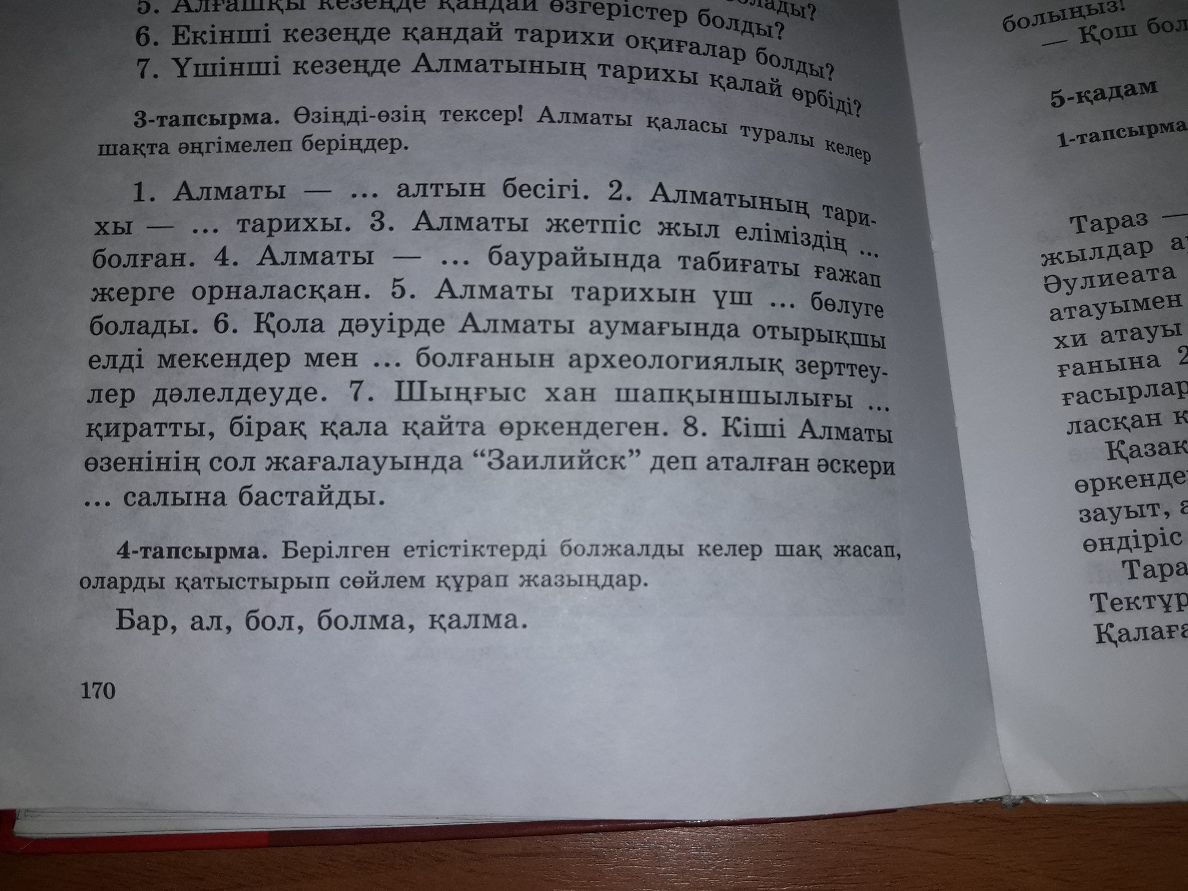 Ол сабаққа барар.Әсел кітапты алар.Ондай оқиғалар болар.Олай ешқашан болмар.Асет жұмыста калмар.
