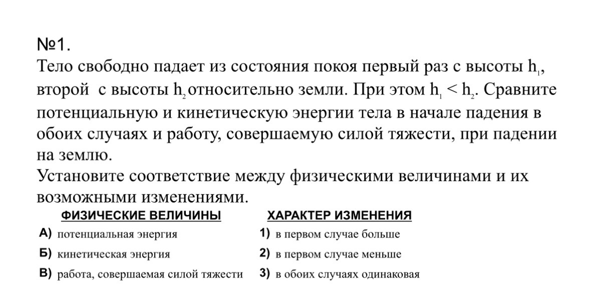 В начальный момент скорости 0, кинетические энергии 0 (одинаковые и равны 0)