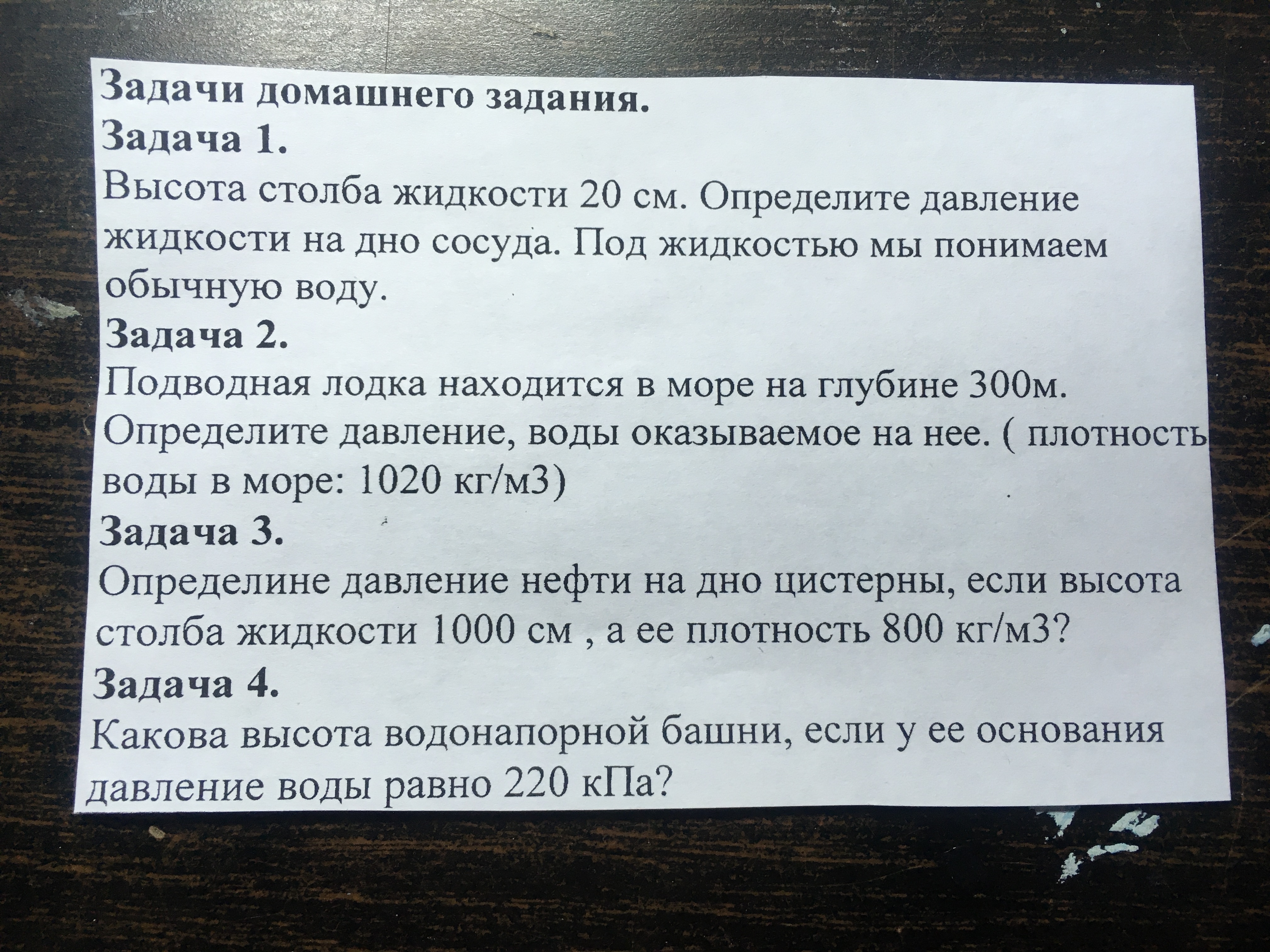 P=q*g*h где плотность жидкости (воды 1000кг/м^3), ускорение свободного падения, высота столба жидкости