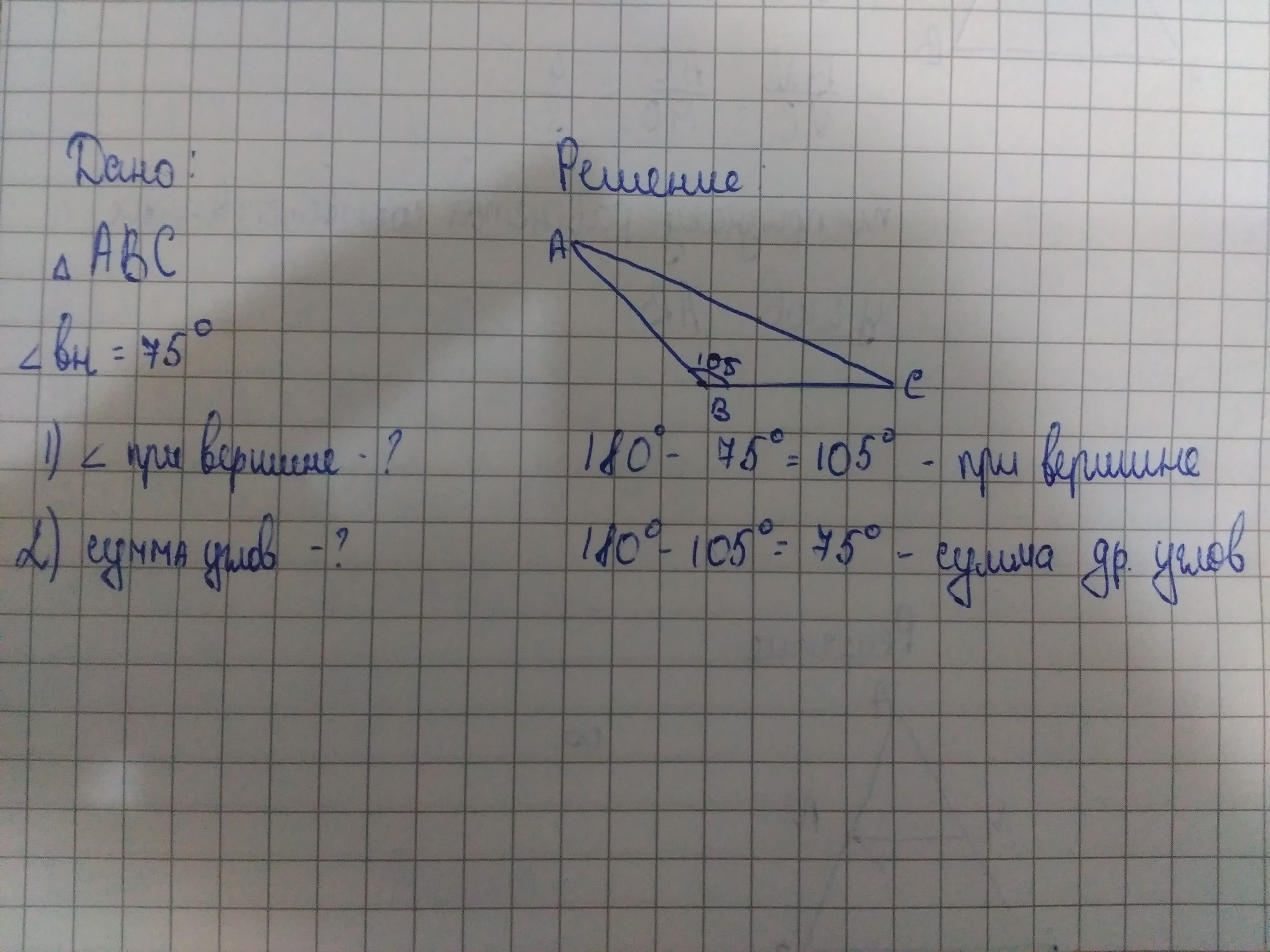 Один из внешних углов треугольника равен 75°. Чему равны: