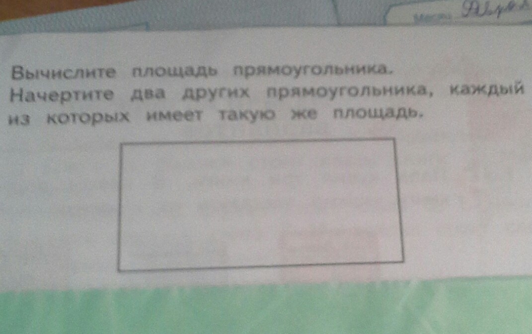 Вычислите площадь прямоугольника начер два других прямоугольника каждый из которых имеет такую же площадь.
