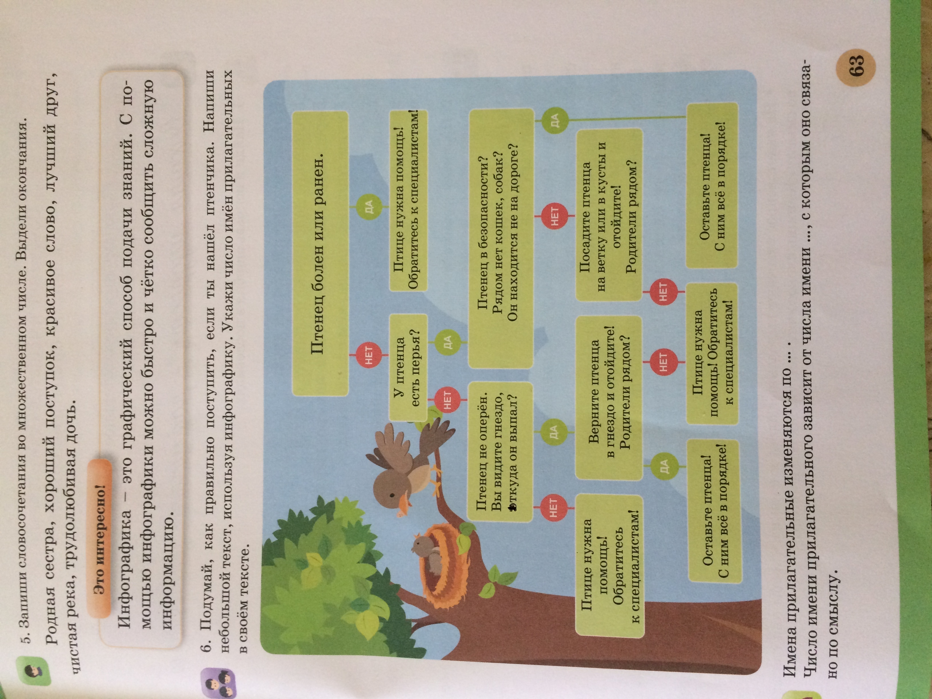 я увидел птенца, осмотрю его. если он ранен обращусь к специалисту если нет посмотрю есть ли у птенца перья? у птенца нет перьев? если нет значить он еще маленький. посмотрю нет ли рядом гнезда. если нет обращусь к взрослым, если да, то верну птенца в гнездо и отойду посмотреть есть ли родители. если есть оставлю и пойду куда шел, если нет обращусь к специалистам. ну а если у птенца есть перья осмотрюсь нет ли рядом кошечек или собак. посажу птенца на ветку или куст и отойду посмотреть есть ли родители. если есть пойду домой если нет скажу взрослым.