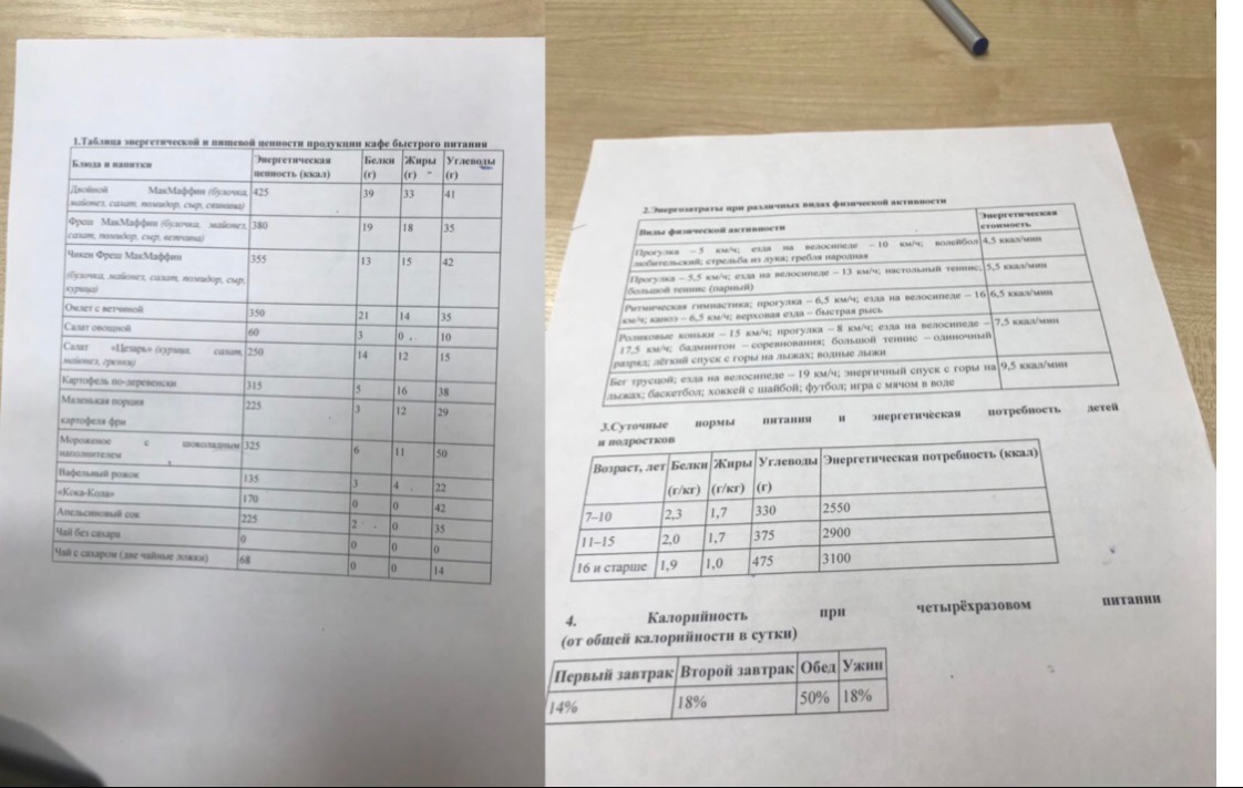 калорийность второго завтрака при четырёхразовом питании; заказанные блюда, которые не должны