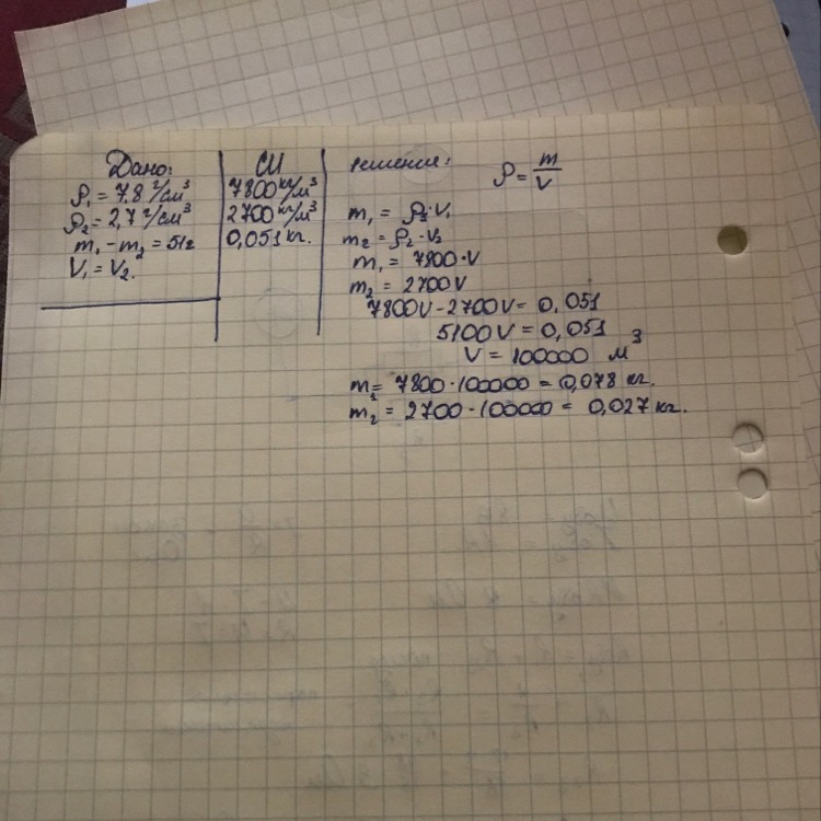 Есть два одинаковых по размерам бруска. Масса бруска из