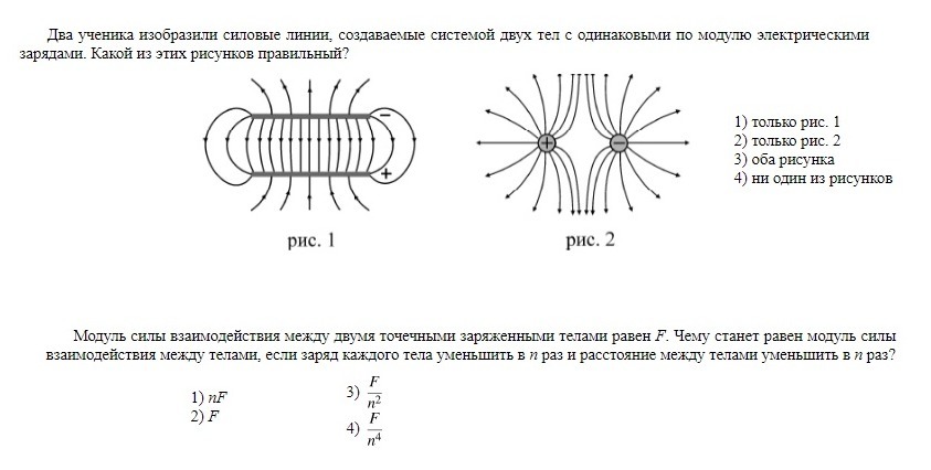 1) только рис.1, если не заморачиваться с направлением стрелок на нем. Вроде принято что линии эл.поля начинаются на плюсе и кончаются на минусе.