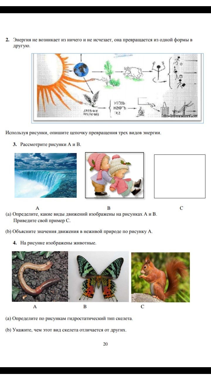 1 солнечные лучи падают на землю и возгарают деревья а потом на кусты и всё начинает гореть 2 природный и массовый пример дождь. Б. Ветер дует и получается течение и из за этого получается движение. Ну а дальше я не знаю