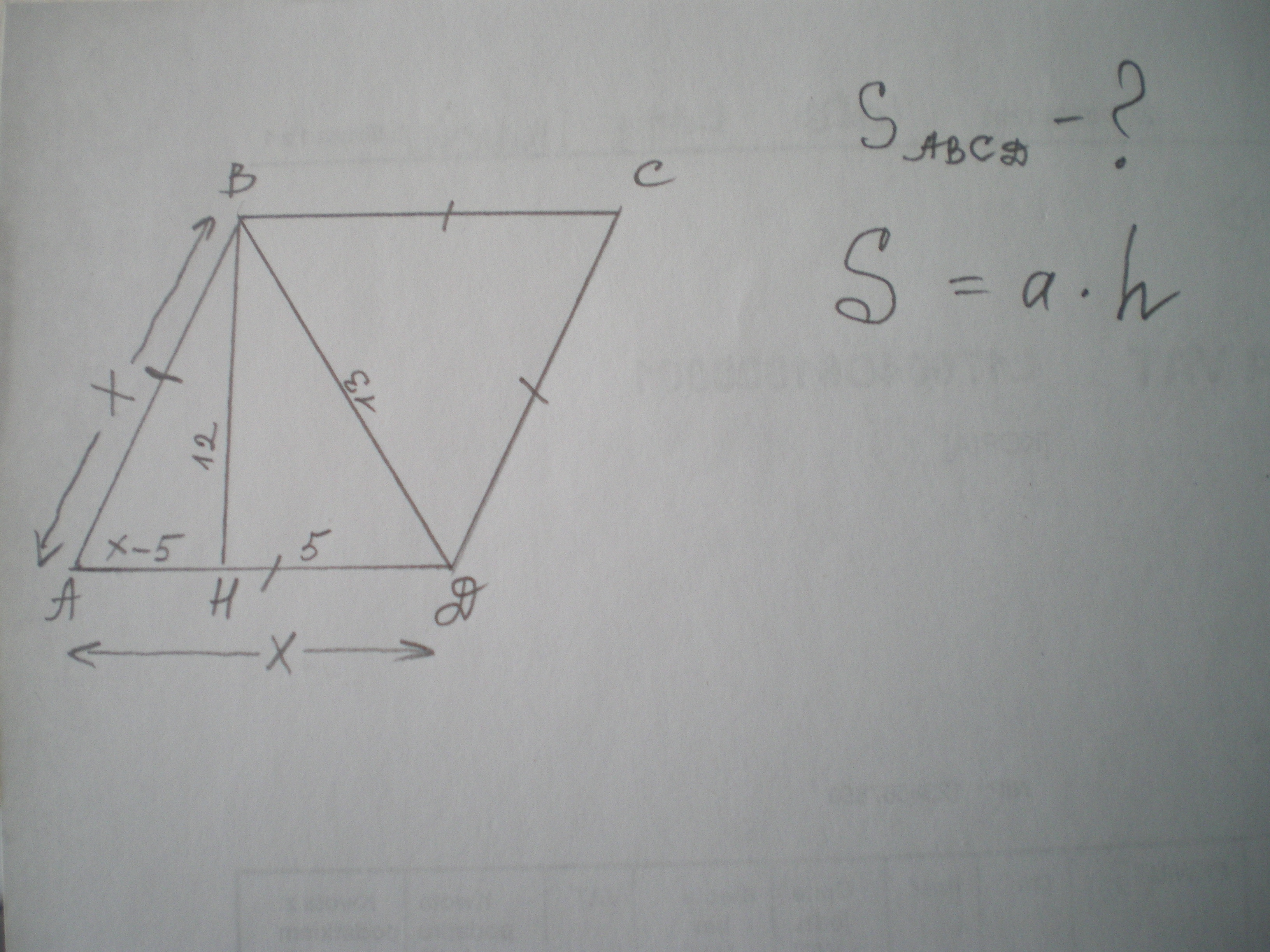 Пусть АД=АВ=х, тогда АН=х-5 см