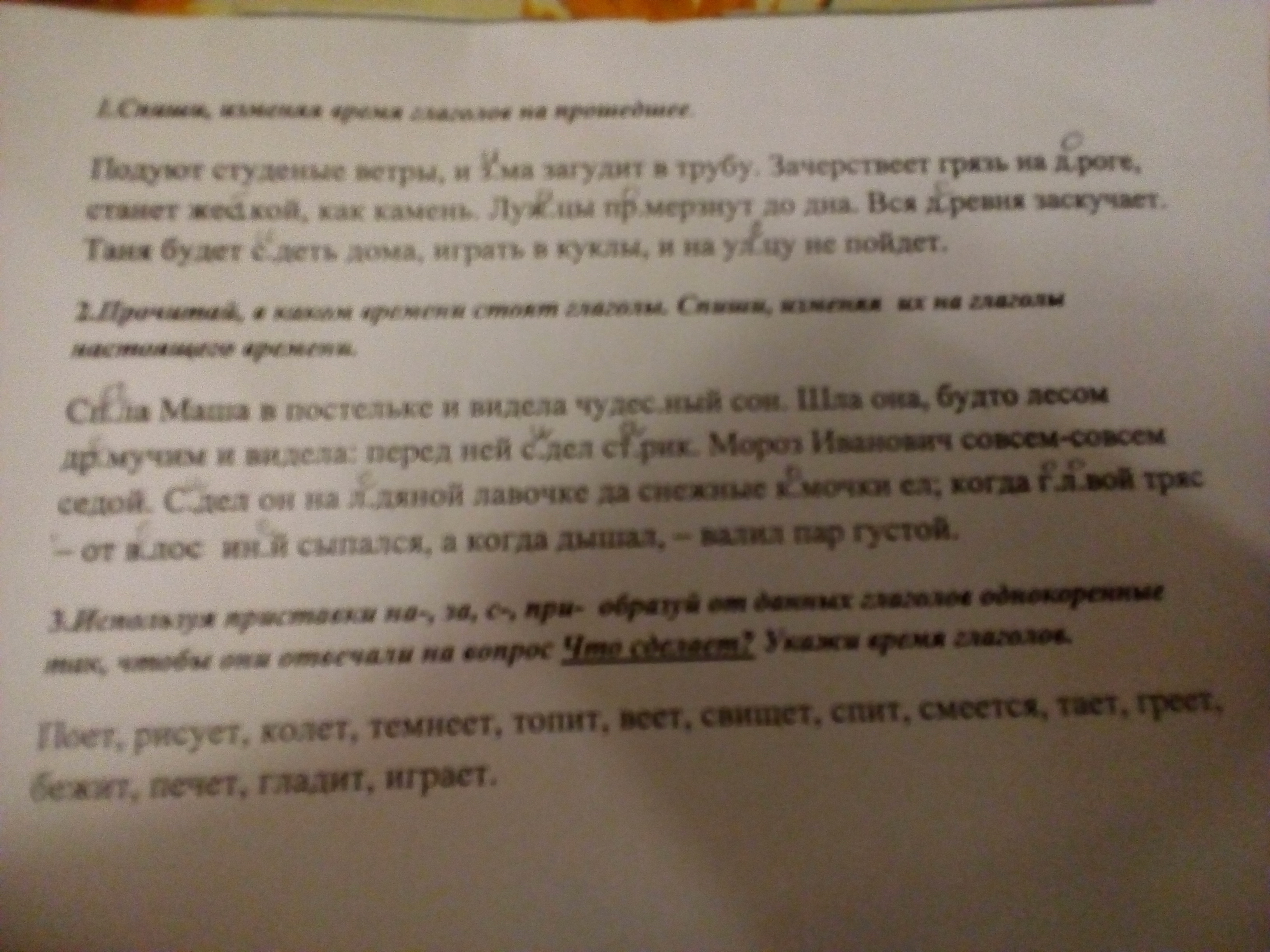 2.Спала прош. Вр. - Спит наст. Вр., видит наст., сидит наст.,сидит.,ест наст., трясет наст., сыпится наст., дышит наст., валит наст.