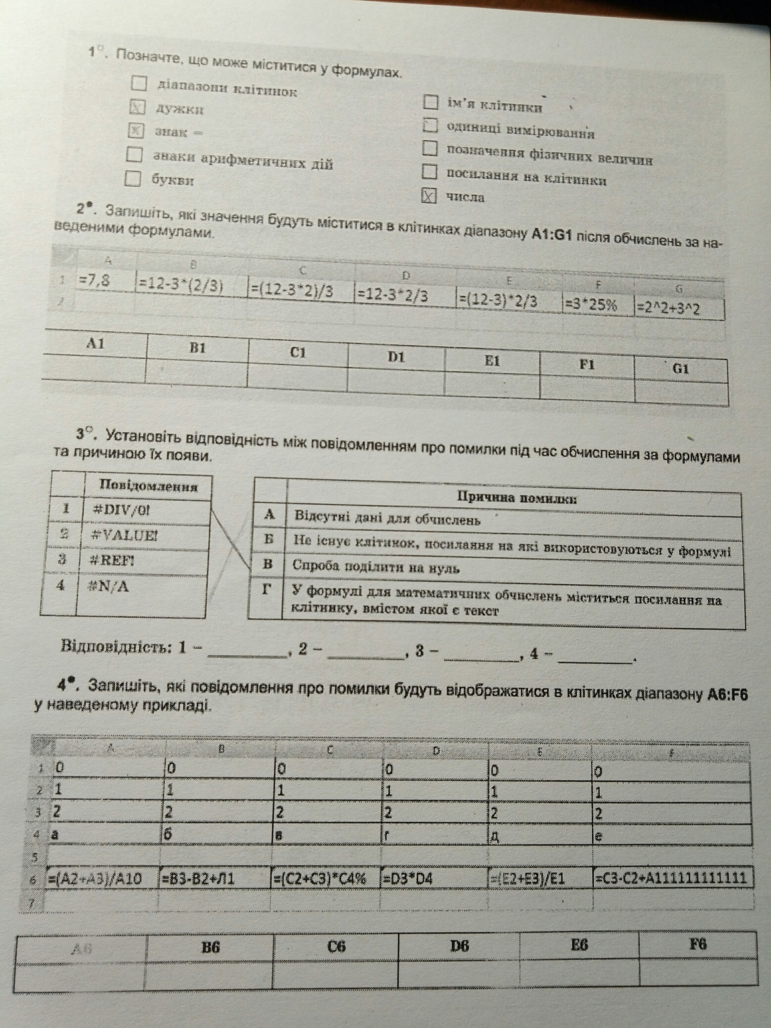 4. #ДЕЛ/0!, #ИМЯ?, #ЗНАЧ!, #ЗНАЧ!, #ЗНАЧ!, #ИМЯ?.