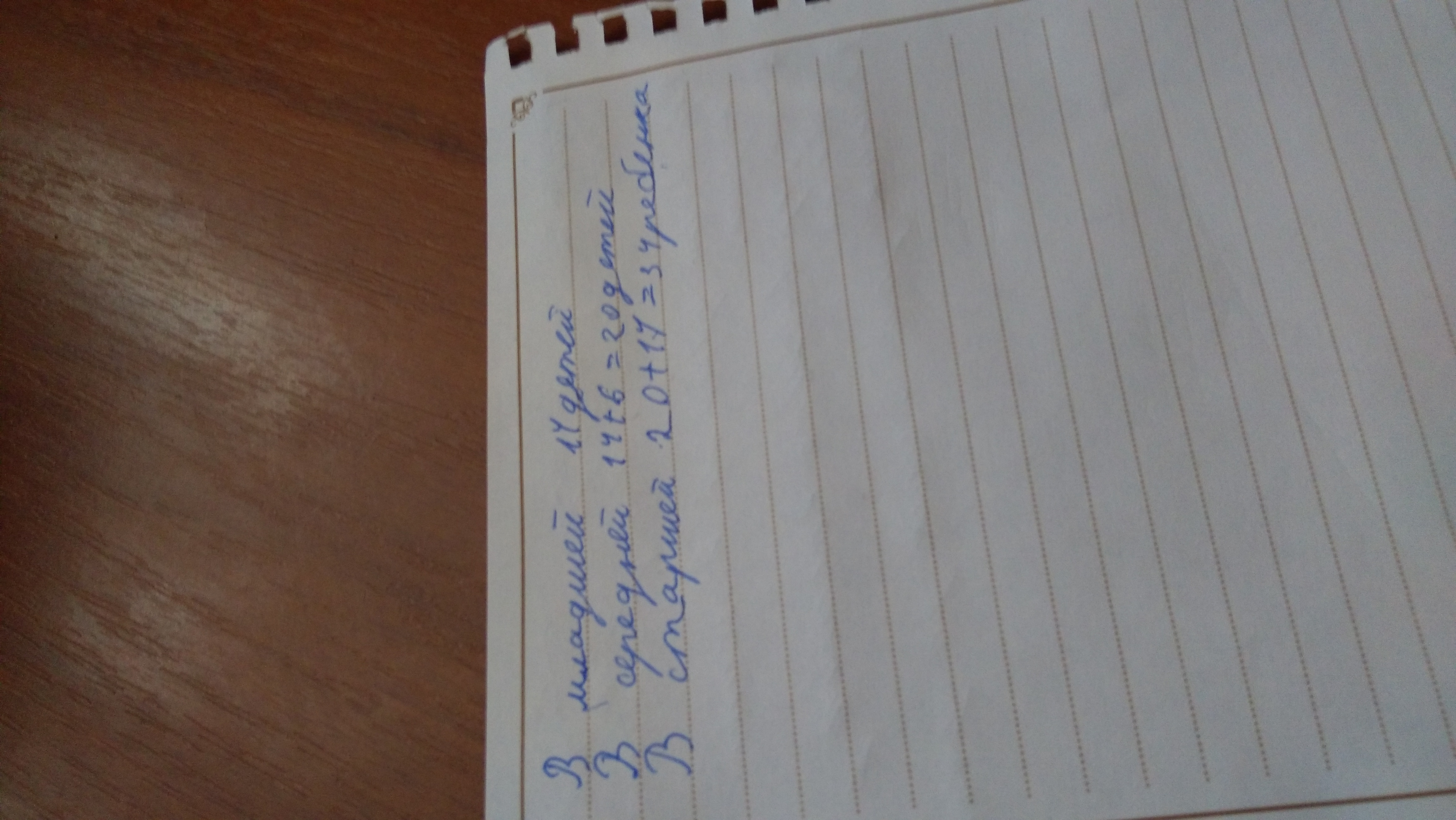 В старшей – 20+14=34 ребенка
