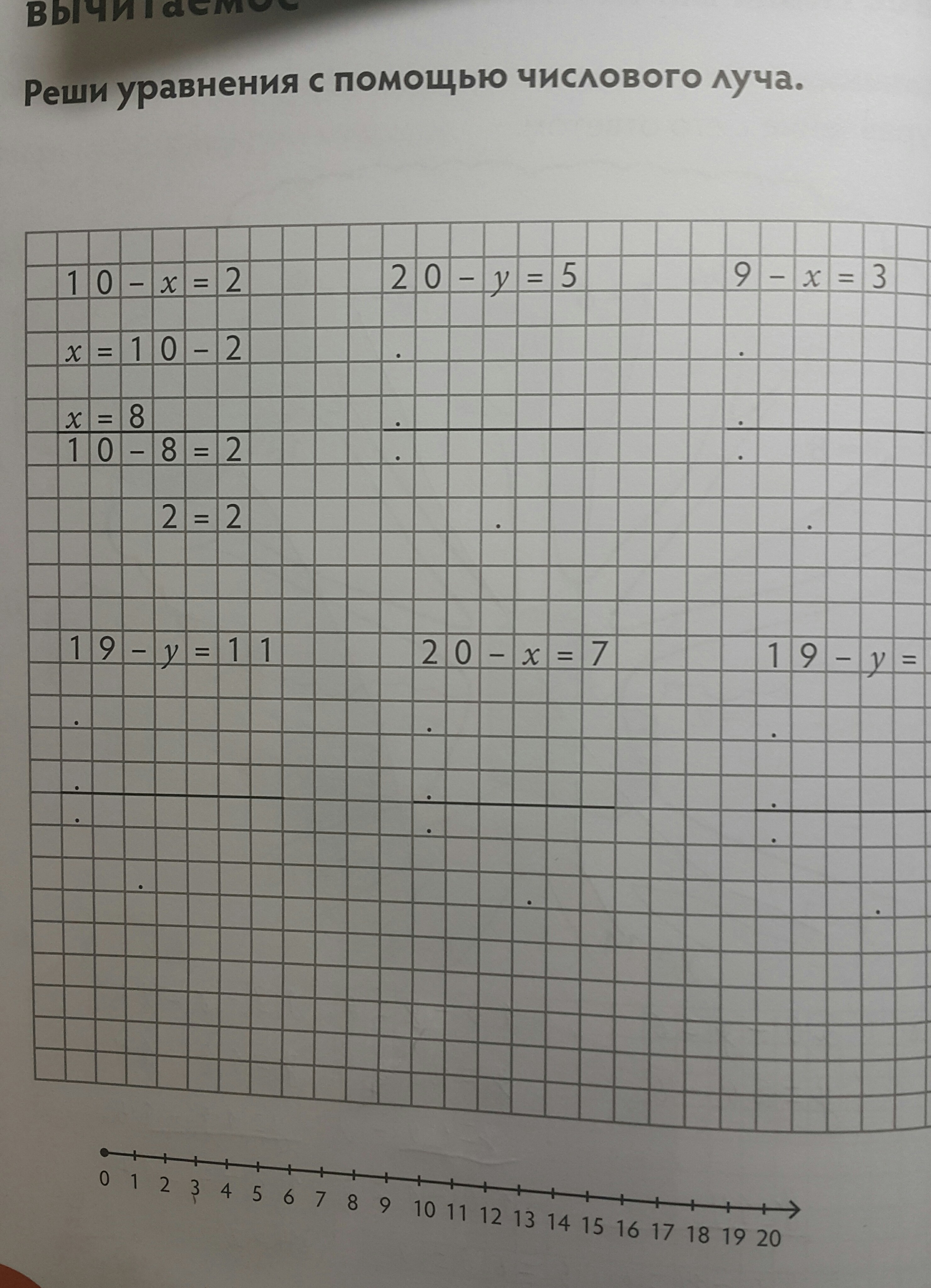 y = 20 - 5 x = 9 - 3 y = 19 - 11 x = 20 - 7