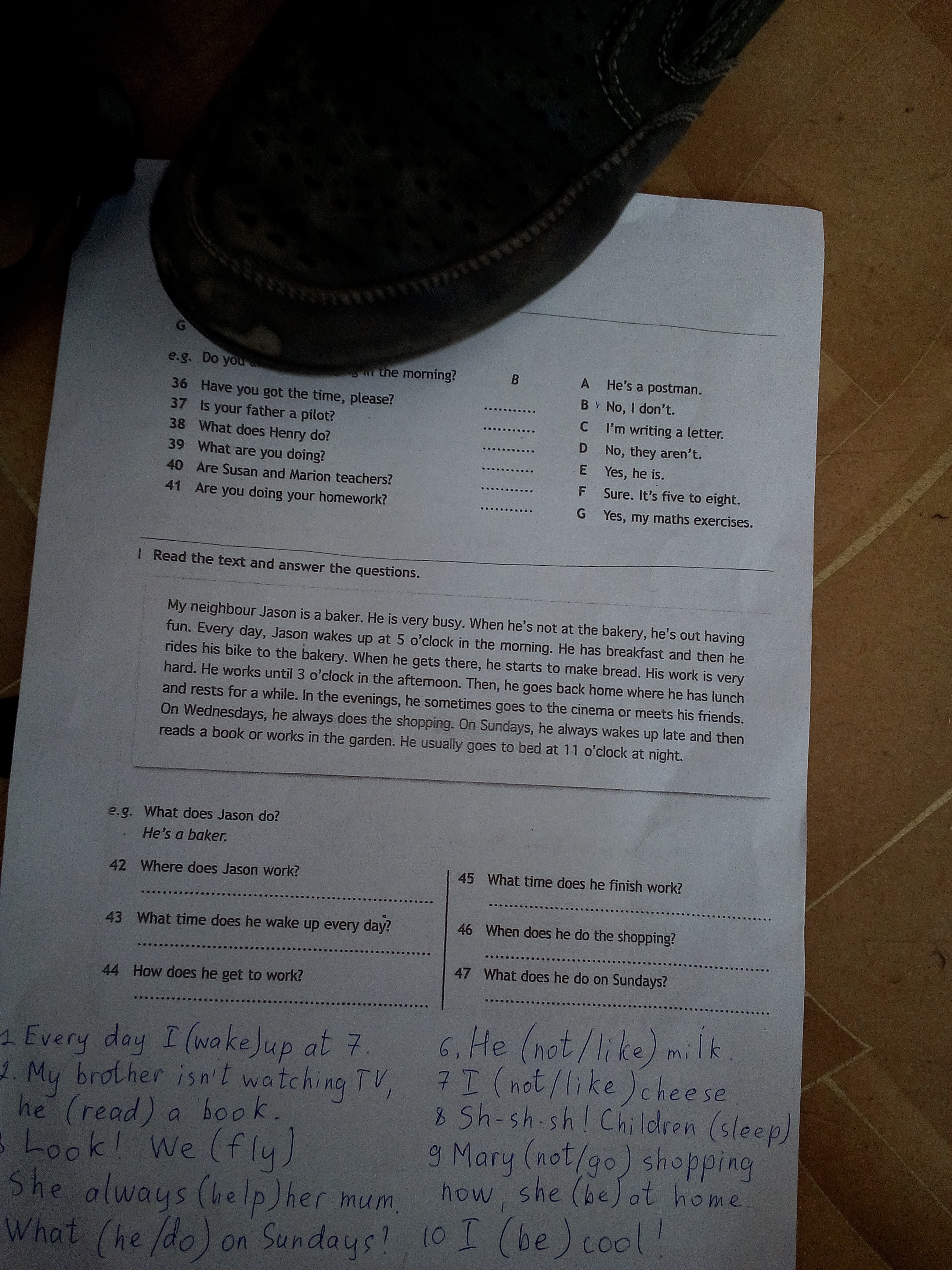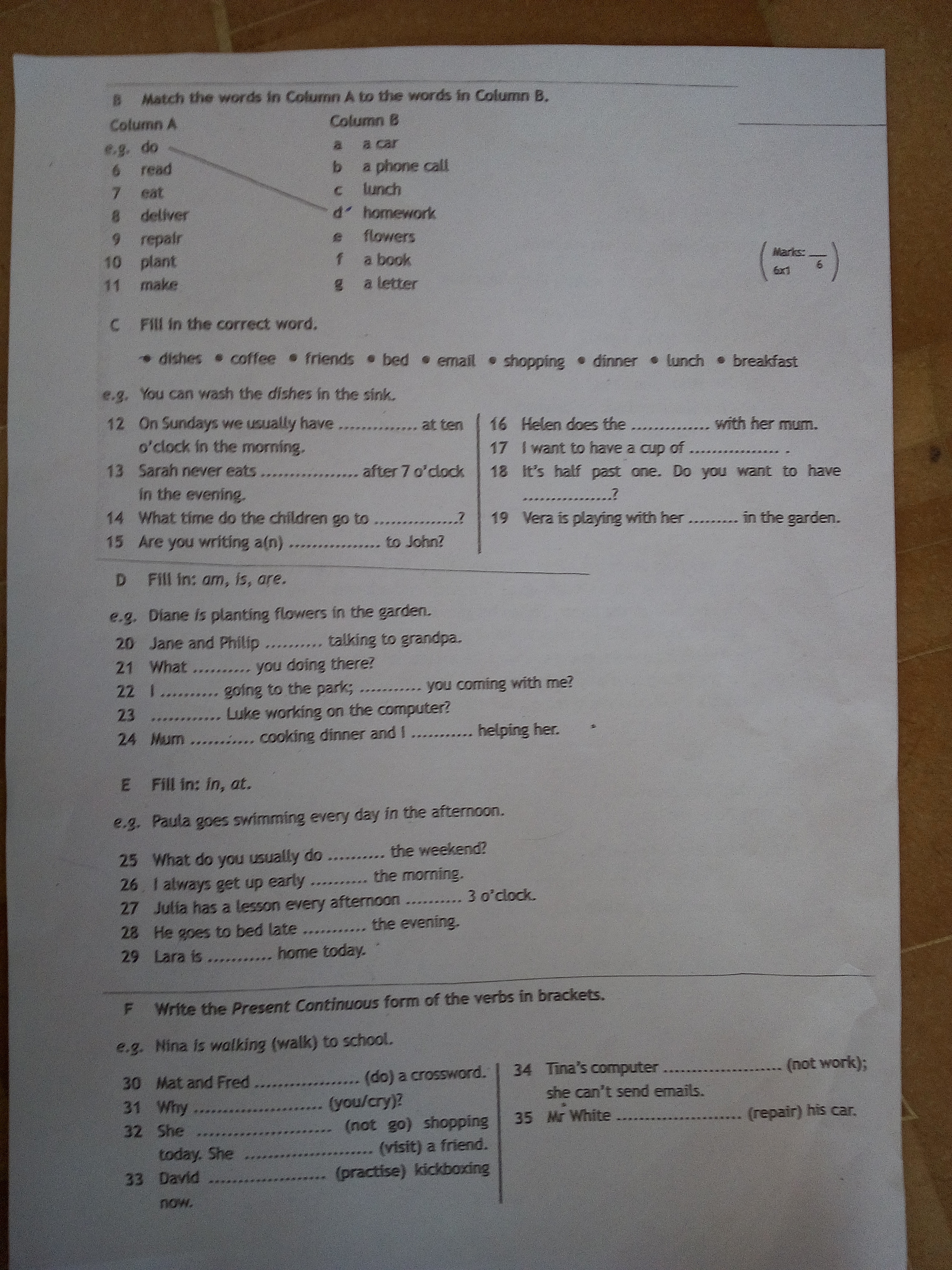 Read a book, eat lunch, deliver a letter, repair a car, plant flower, make a phone call.