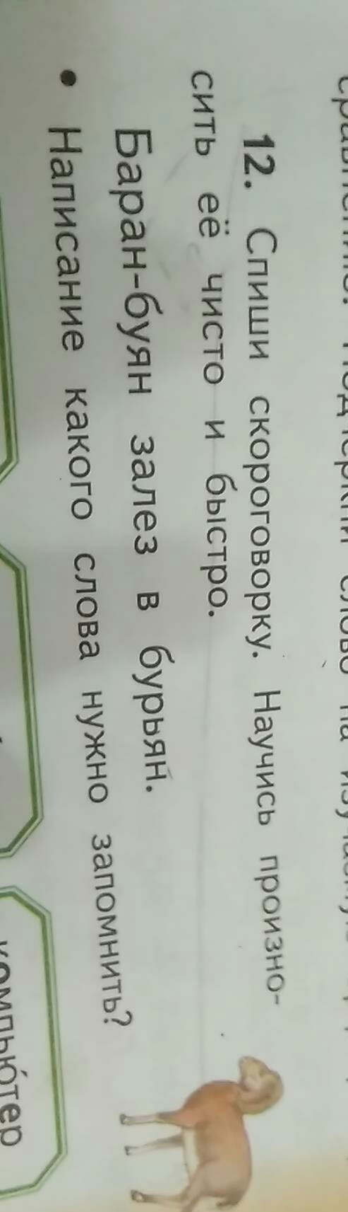 Спеши скороговорку .Научить произносить его чисто и быстро. Баран-буян залез в бурьян. Написании какого слова нужно запомнить?