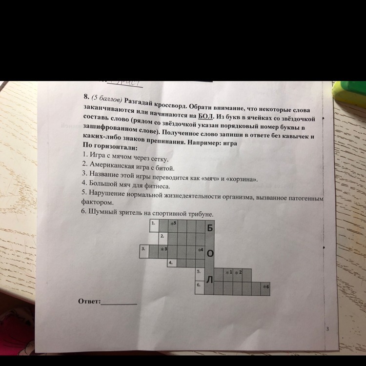 1 волейбол 2 бейсбол 3 баскетбол 4 фитбол 6 болельщик