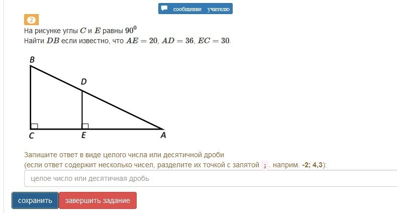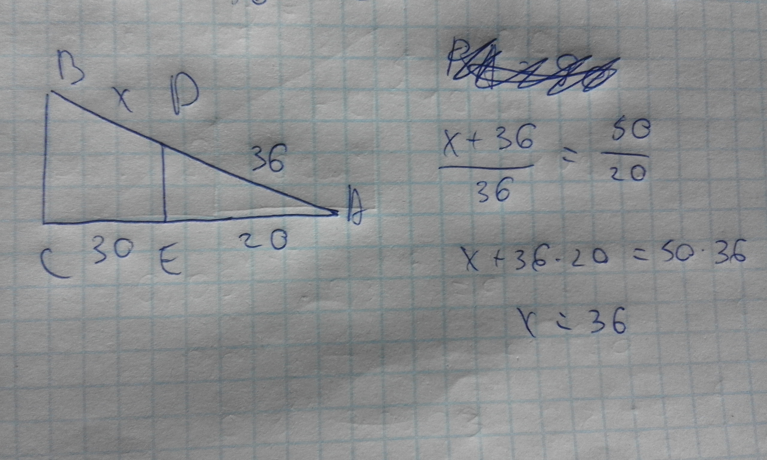 Найти DB, если известно что АЕ=20, АD=36, EC=30