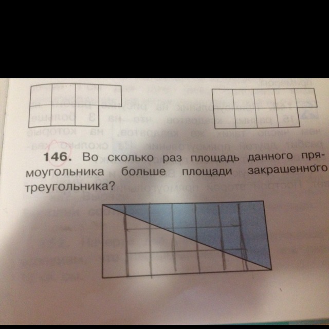 В два раза, потому что диагональю прямоугольник делится на два равных треугольника.