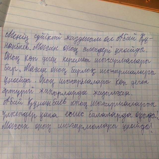 Сочинение на казахском языке на тему "Менің сүйікті жазушым"(мой любимый писатель)