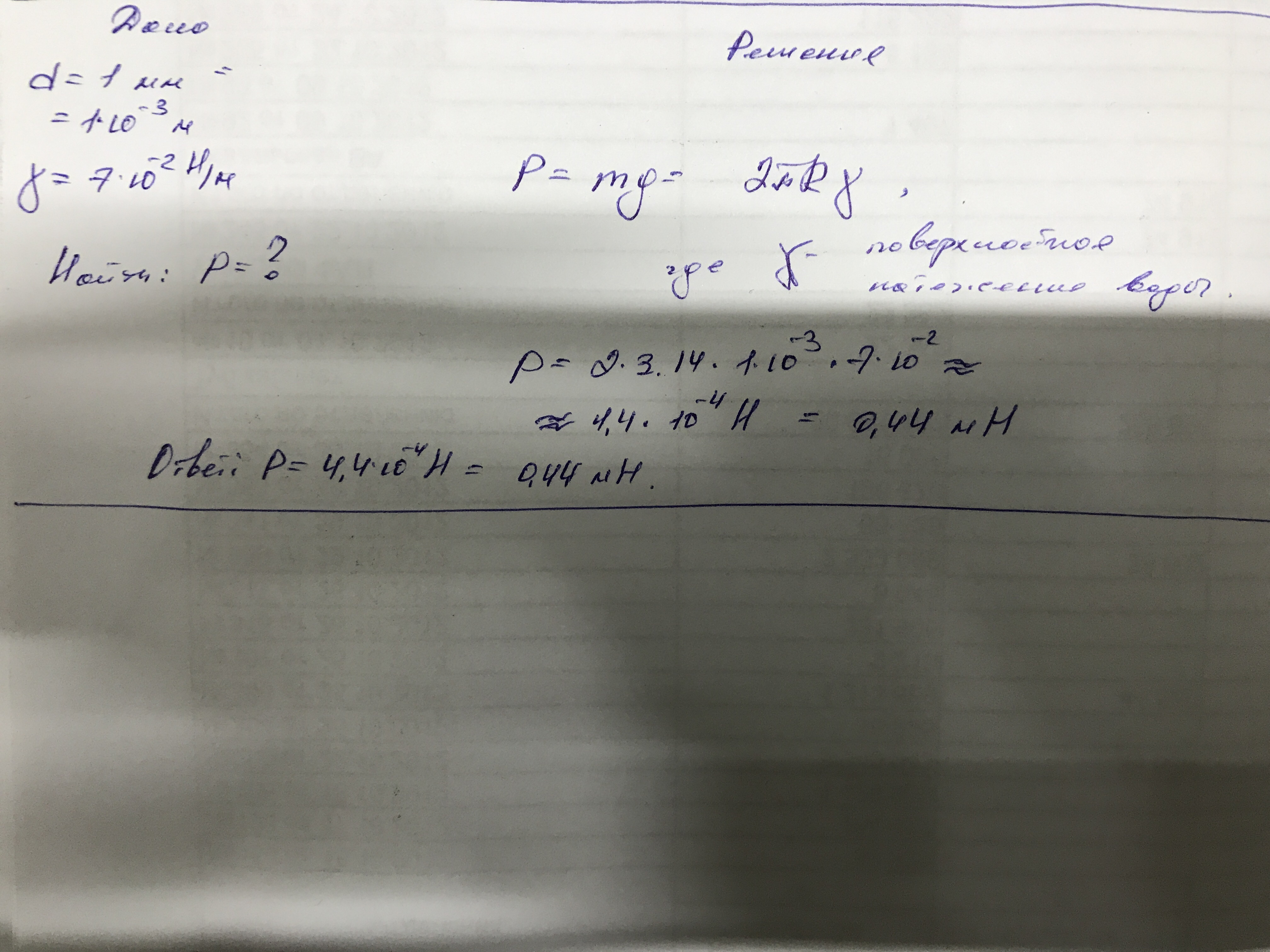 Диаметр шейки капли воды в момент ее отрыва от стеклянной трубки можно считать равным диаметру трубки. Какой вес P имеет падающая капля, если диаметр трубки d=1 мм? Поверхностное натяжение воды равно 7*10^-2 Н/м. Срочно!!!
