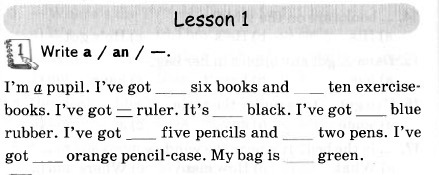 в сущ. ед.ч. пишем "a"