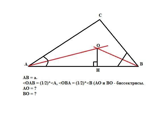 АО = r/Sin(A/2) = a*tg(A/2)*tg(B/2)/(Sin(A/2)(tg(A/2)+tg(B/2))).
