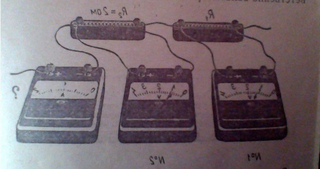 На рисунке изображен участок электрической цепи .Определите силу тока ,который должен показать амперметр , и сопротивление проводника R1 . Напряжение на проводниках R1 и R2 показывают соответственно вольтметры №1 и №2