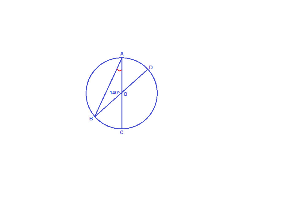 AC и BD диаметры окружности с центром О.Центральный угол AOB равен 140°.Найдите угол BAC.Ответ дайте в градусах