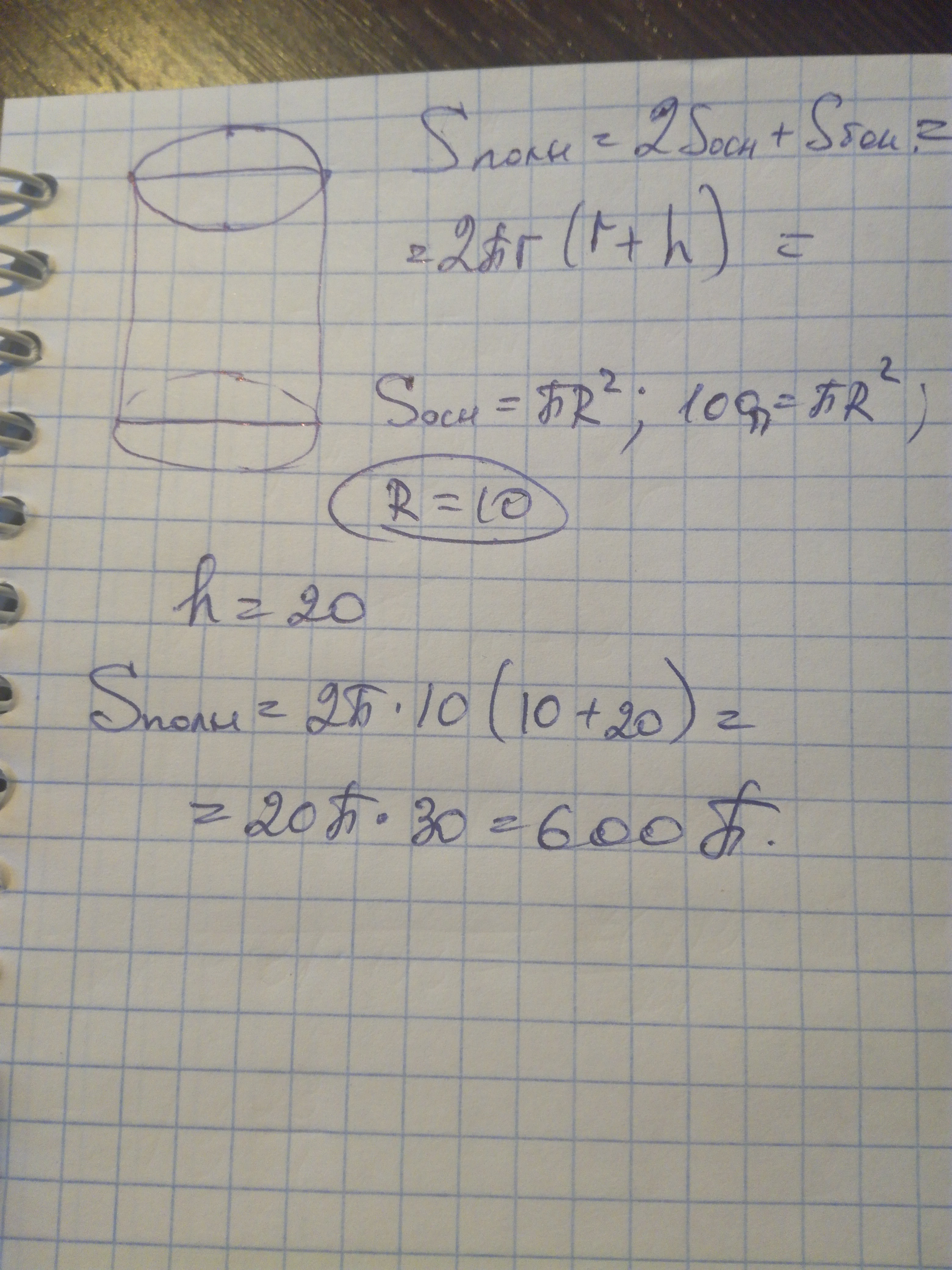 Если смотреть по формуле полной поверхности цилиндра Sцил=2*П*R*(R+h)