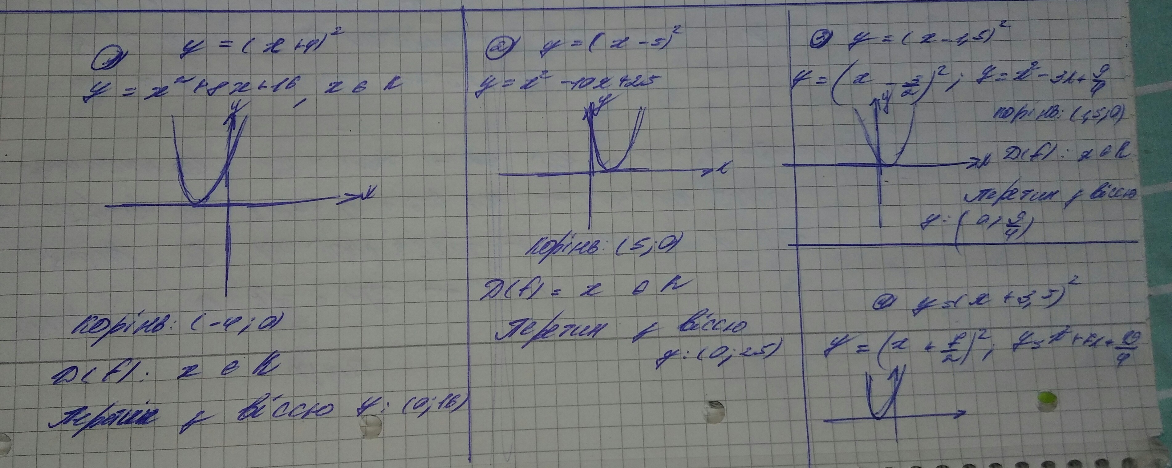 на одной координатной плоскости постройте графики функций: 1) y=(x+4)^2