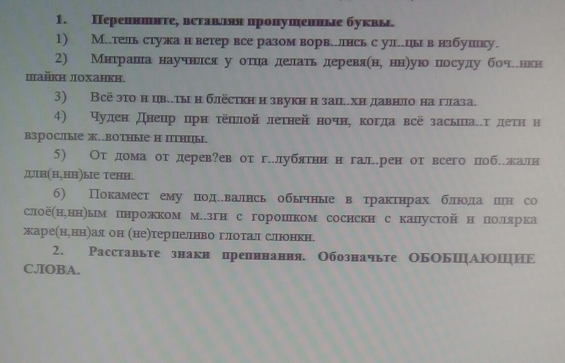 Нужно: расставить знаки препинания и обозначить обобщающие слова.