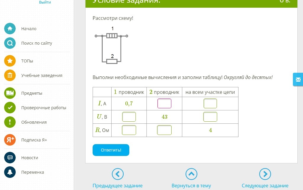 Iобщ=I1+I2 из этого I2=10.7-0.7=10