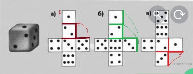 б-может быть развёрткой именно этого кубика. Потому что если попытаться сложить его в уме,мы получим такой же кубик.