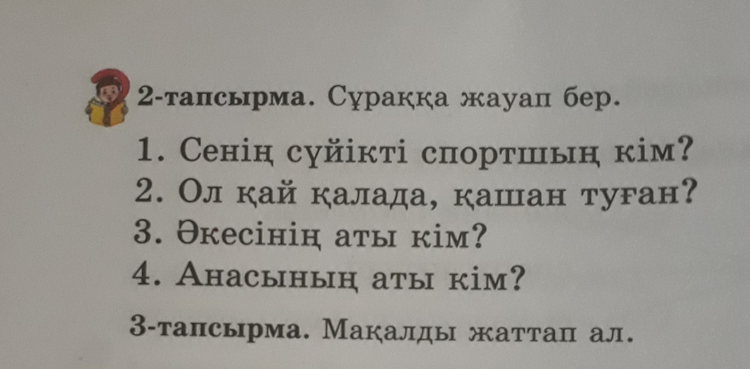 1. Менин суйикти спортшым Андрей Аршавин(это мой, но ты должен был написать про свой ) ол футболист