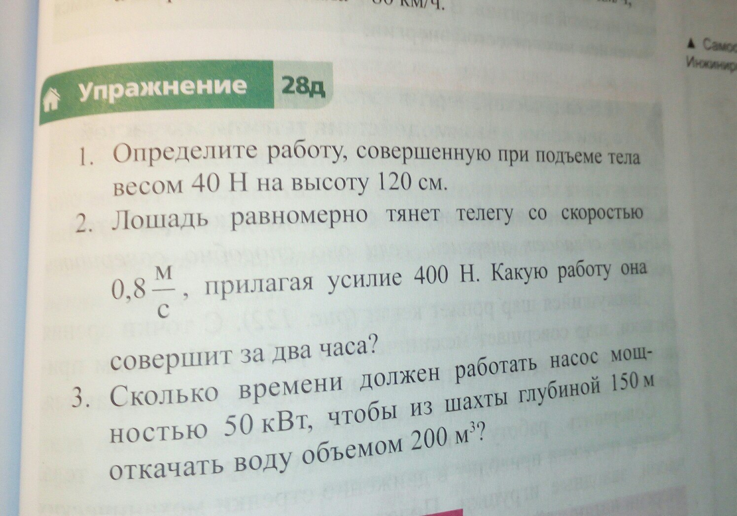 A = 400 Н × 0,8 м/с × 7200 с = 2 304 000 Дж