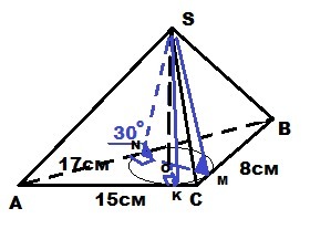 ∠SMO=∠SNO=∠SKO=30° ⇒