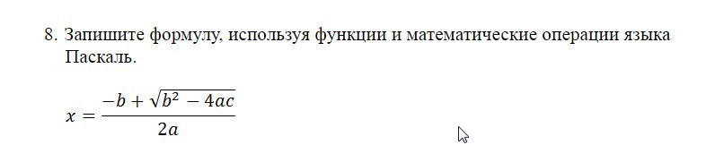 x := (-b + sqrt( sqr(b) - 4*a*c)) / 2*a