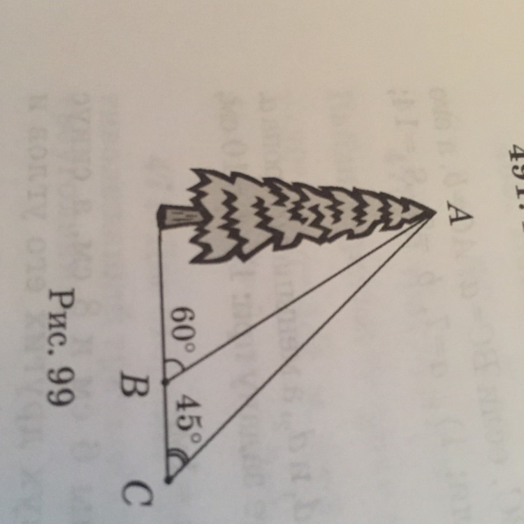 Найдите высоту дерева по данным на рисунке 99, если BC=a. Помогите пожалуйста нужно решение до завтра