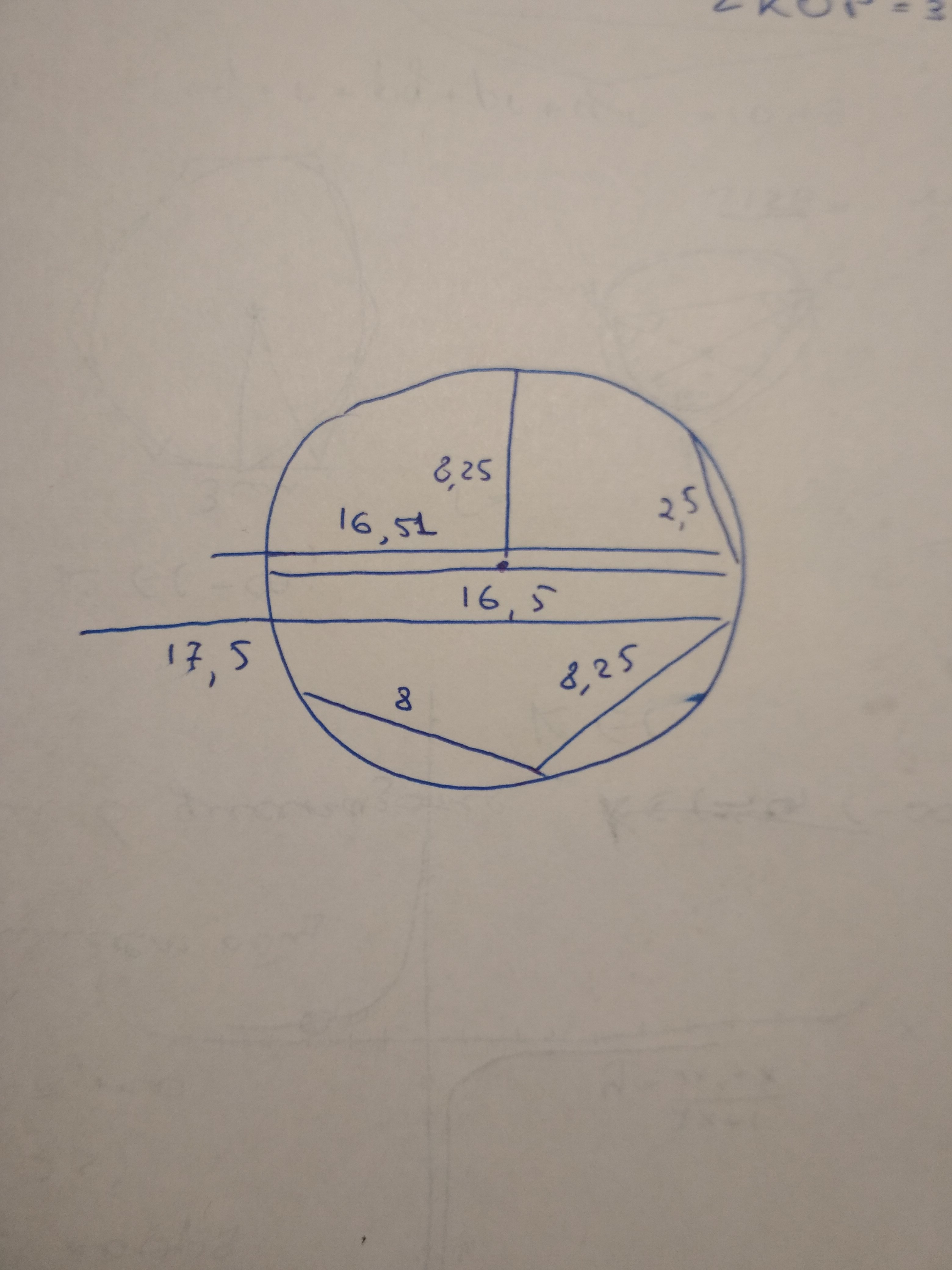 Радиус окружности 8,25 см.Может ли какая либо ё хорда быть. а) 2,5 см б)8,25см в) 8 см г) 16,5 д) 16,51 см. е) 17,5 см