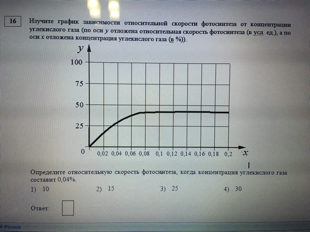 График пересекает чуть выше 25, значит ответ: 4) 30.