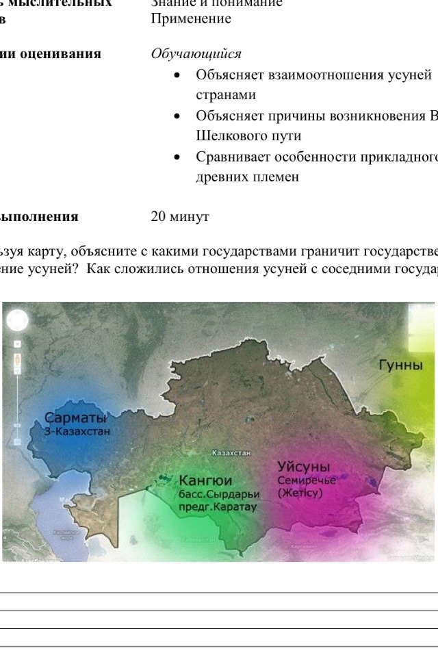 Используя карту, объясните с какими государствами граничит государственное объединение усуней? Как сложились отношения усуней с соседними государствами? Ваши выводы.