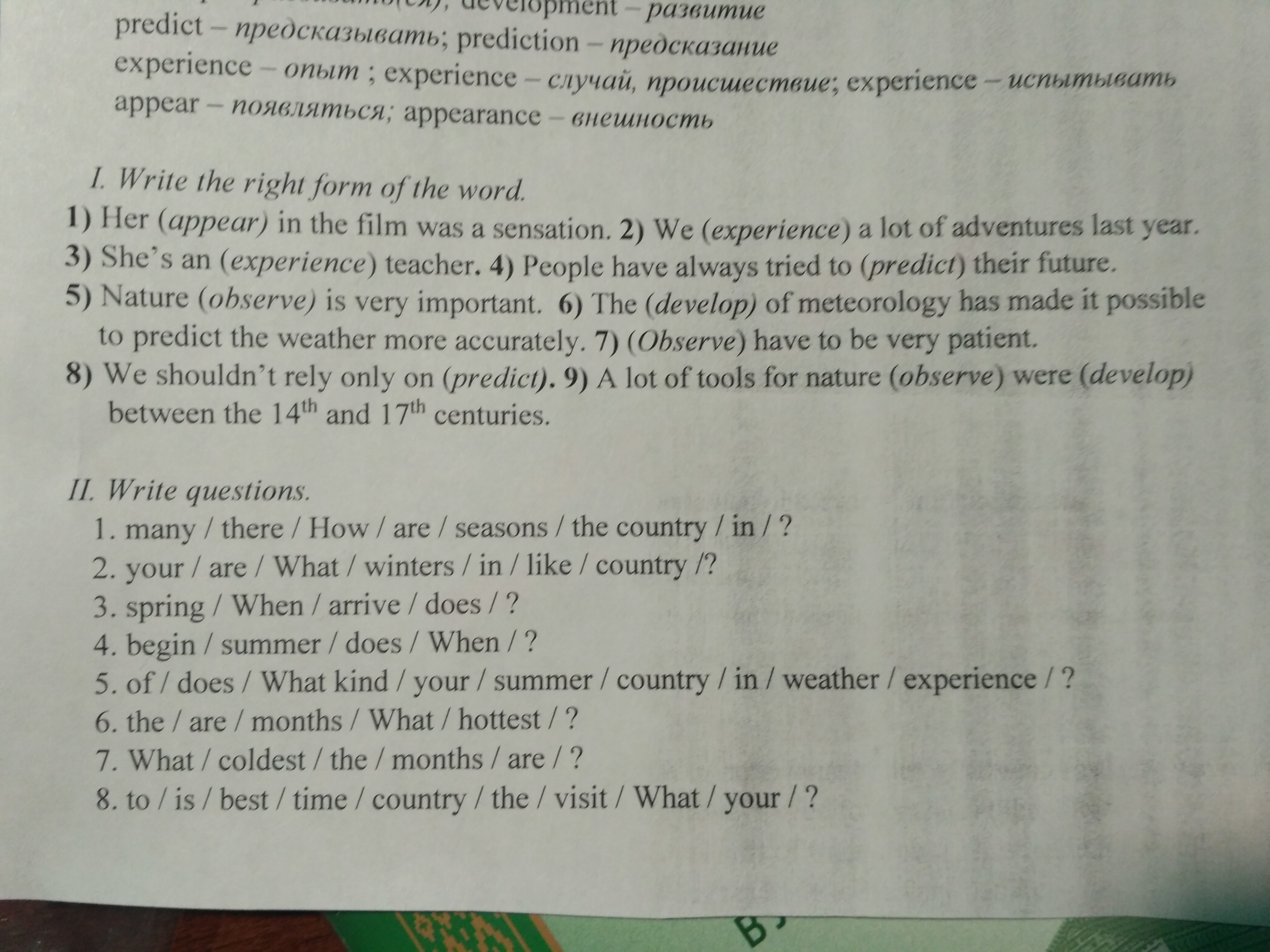 5. What kind of your weather experience does in the summer country?